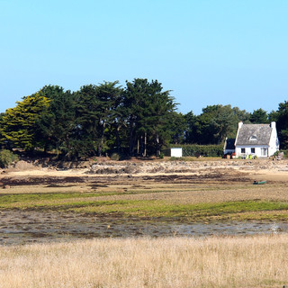 Une petite île en face de Carantec, accessible seulement à marée basse par une chaussée qui se couvre et se découvre selon la marée.