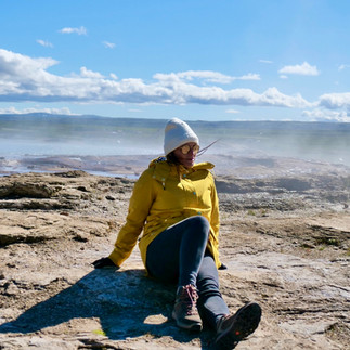 Nous commençons la visite par le site géothermique de Geysir. Dès notre arrivée, nous sommes frappés par la vue des fumées qui s’échappent de terre sur tout le site. Le site est accessible gratuitement, et la visite peut s'effectuer en moins d'une heure. Le parcours est balisé et vous pourrez déambuler autour des marres de boue bouillonnantes, des fumerolles, des sources d'eau chaude jusqu'au fameux geyser Strokkur qui rentre en action toutes les 7 à 10 minutes environ, vous pourrez admirer son explosion qui propulse l’eau jusqu’à 20 mètres de haut.