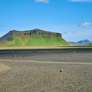 Tout près de Vik, une petite halte de quelques minutes suffit pour visiter la "grotte Yoda", devenue très populaire et particulièrement photographiée ces dernières années. Elle se situe face à la mer, aux pieds d'un énorme promontoire de verdure nommé Hjörleifshöfði, qui domine le désert de Myrdalssandur.